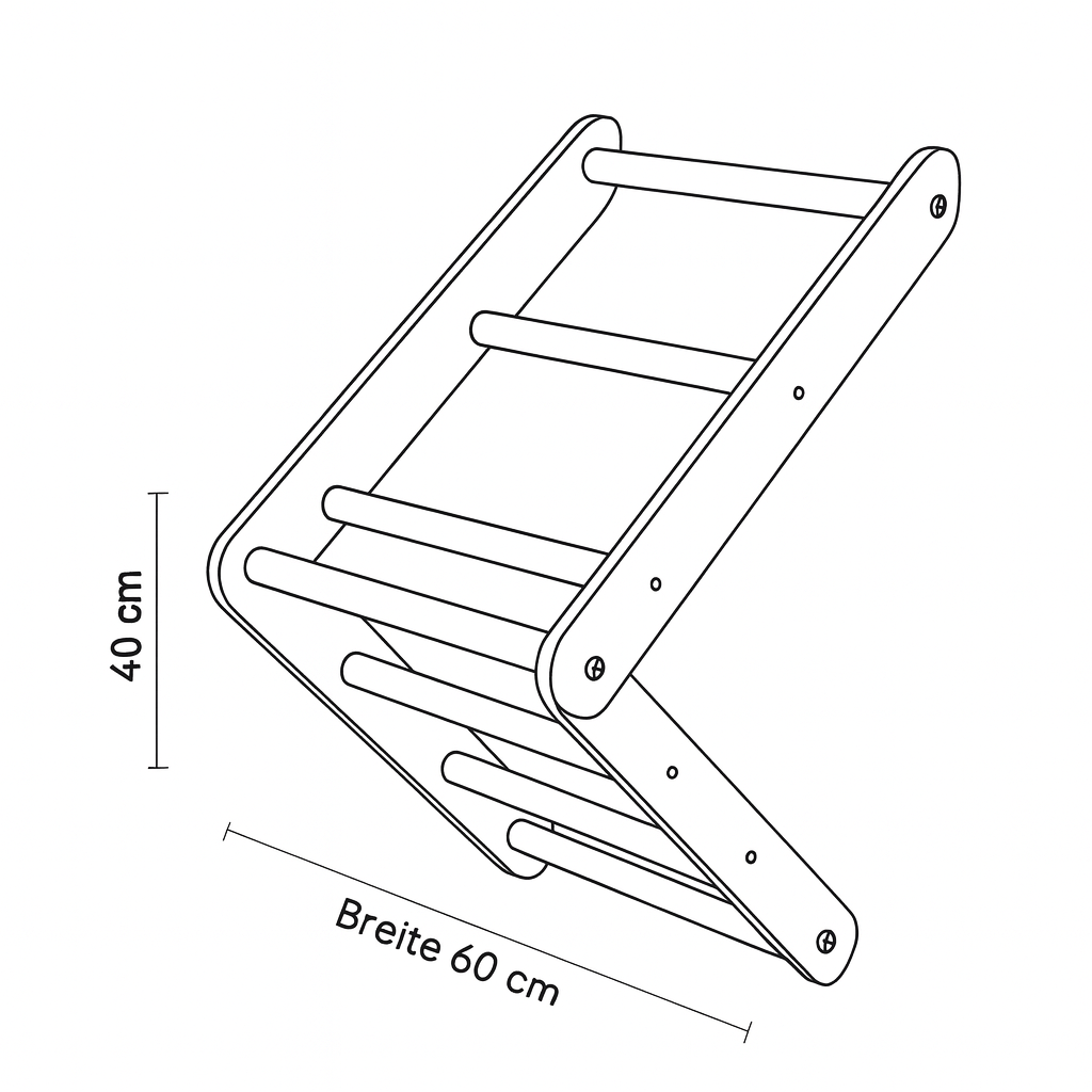 • Der Unterschied liegt – wie so oft – im Detail: Eine hochwertige Kletterwand für Kinder erkennst du an der stabilen Verarbeitung, dem Material und der Montagefreundlichkeit. Während günstige Modelle häufig aus Sperrholz bestehen, verschraubte Sprossen haben oder aus mehreren Teilstücken zusammengesetzt sind, setzen wir bei Sloni auf Massivholz in einem Stück.
