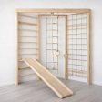 Das Set kombiniert Sprossenwand, Gladiatornetz, Monkey Bar (Klettergerüste) sowie ein komplettes Seil-Set (Ringe, Kletterseil, Seilleiter) – alles aus hochwertigem Naturholz gefertigt und für tägliches, aktives Spielen ausgelegt.Die Ecke wird zu einem sicheren Bewegungsraum, in dem Kinder klettern, schaukeln, hangeln, Kraft aufbauen und ihre Motorik weiterentwickeln.