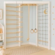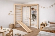 Die Theo XL Corner Kletterwand in Weiß-Natur vereint funktionelles Design mit der warmen Ausstrahlung naturbelassenen Holzes. Dieses 2-seitige Indoor-Kletterset nutzt Ecken optimal aus und schafft einen vielseitigen Bewegungsraum, der Kinder zu neuen motorischen Herausforderungen motiviert.